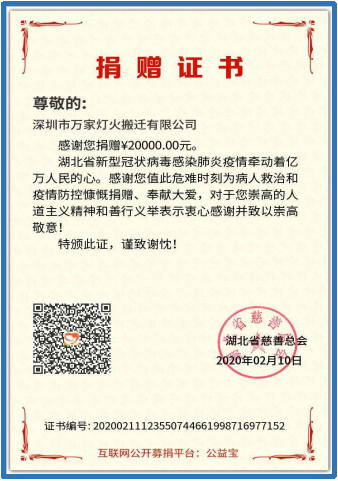 ——人生就是博(中国区)官方网站搬家公司为武汉新冠肺炎捐钱